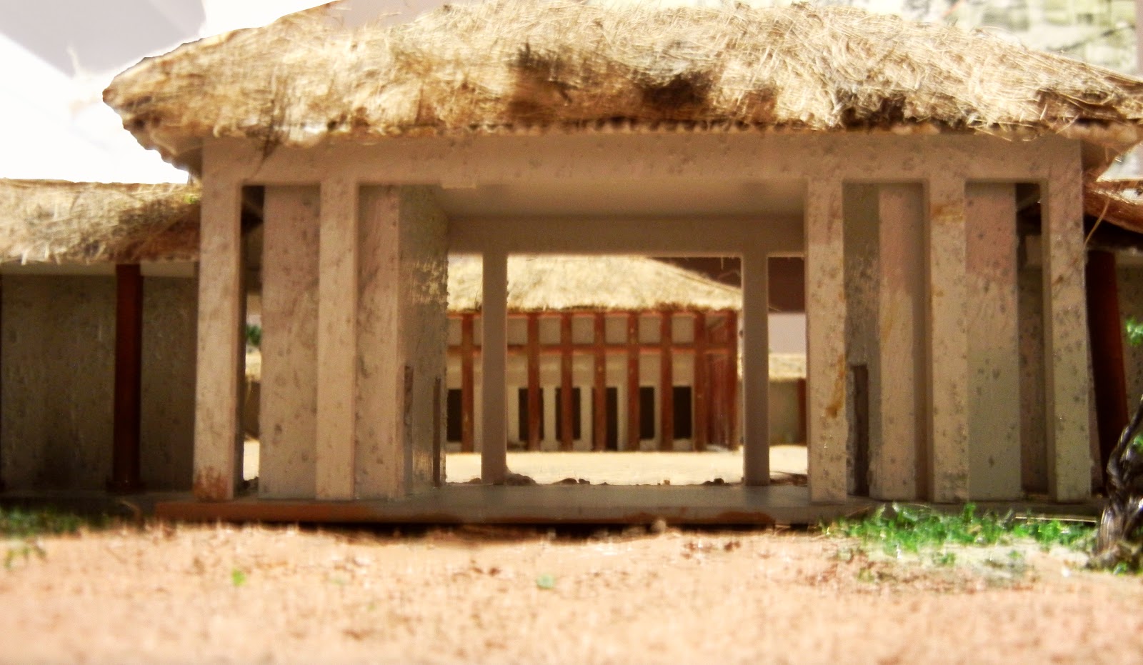 radiating kinsmen of privilidge and retainers with specialize duties. It is a metaphorical map of duty where specific services are accorded distance to the sovereign. This kind of system arranges the relationship between the center and the surrounding area according to the geographical distance, and also stipulates the obligations of the surrounding center. Clothing and ritual norms are marked as well- showing a very formal and rigid mapping of society. The conception predates th Zhou- and was to have existed since the Shang dynasty. At Erlitou the layout of key buildings already displayed this relation. (Below) Enclosure of Power: the great palace at Erlitou. There were 8 large enclosed palaces in the city in close proximity to each other. Most of them already possessed the key features of traditional Chinese architecture. A grid lay out and a courtyard, a largely centered great hall and radiating lodges for attendants.
