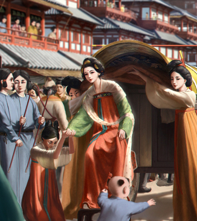 Consort Yang became so favored that whenever she rode a horse, the eunuch Gao Lishi would attend her. 700 laborers were conscripted to sew fabrics for her. Officials and generals flattered her by offering her exquisite tributes