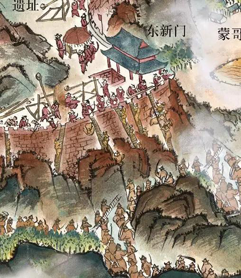 In a sense these garrison troops were some of the most steadfast Song veterans. For over 36 years multiple Khans tried to take the key fort at Diaoyu Fortress, the Great Khan Möngke's siege of Diaoyu Fortress was one of the most fraught attempt to take the fortress but despite outnumbering the defenders by 2 or 3 times, it failed and the Möngke died of cholera during the siege (alternatively other sources claimed he died due to shrapnel.)